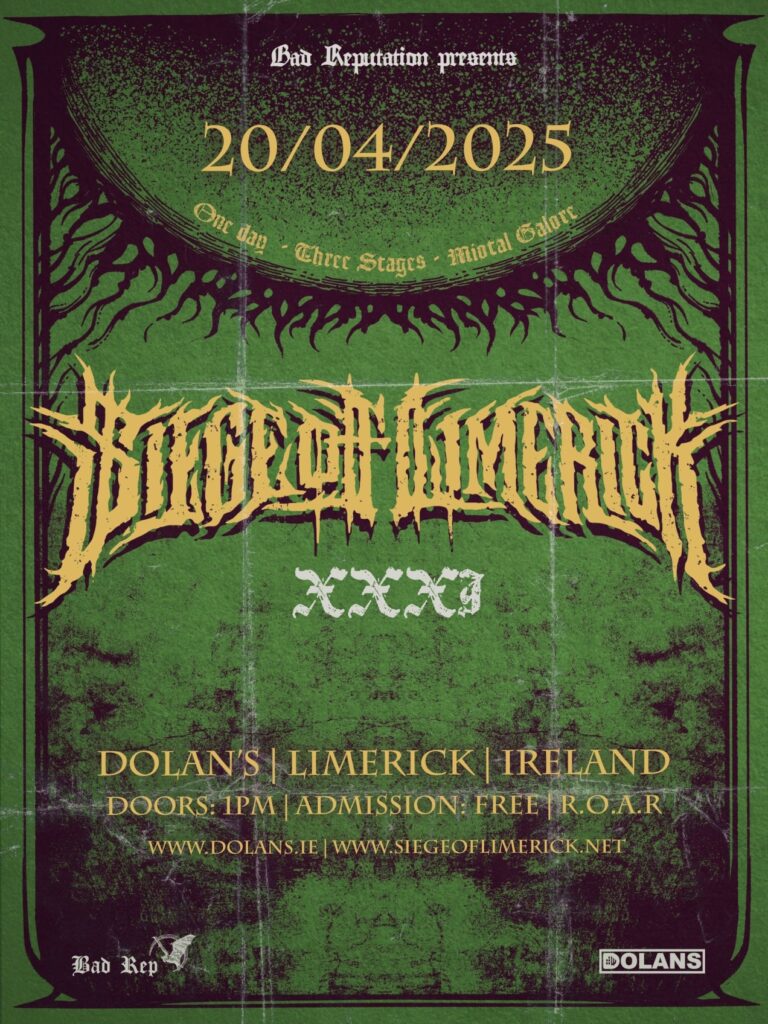 Through the mist, through the frost, through the gales, we dream of Earrach. The Siege of Limerick returns on April 20th to the hallowed halls of Dolans – once again, with extraordinary effort and through the soundness of many Irish Metal bands, we bring you this Siege for free. Count your blessings, honour the day with your presence.